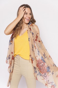 MÁS INFORMACION Realizado en Algodon poliester . De formato rectangular de 1.90 mt de largo x 0.8 mt de ancho. Con motivo de flores, súper liviana y fresca. Ideal para acompañar tus looks esta temporada.