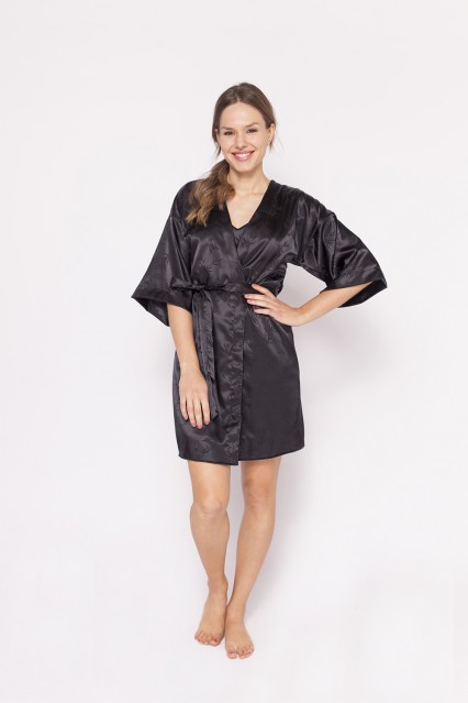 MÁS INFORMACION Realizado en Saten jaquard. De formato clásico, largo a las rodillas y manga 3/4. Posee presillas y lazo para ajustar. Podes encontrarla en tres variante de color. Su tela de saten hace que sea suave al tacto transformándola en una prenda ideal para el contacto con la piel.