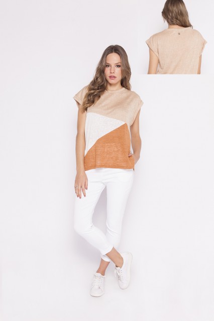 MÁS INFORMACION Realizado en Lanilla liviana. Formato clásico. Largo a la cadera, ruedo recto con tajitos laterales. Hombro caído, manga corta sin sisa. Escote redondo, chapa marcaria en escote espalda. Una prenda que combina colores frescos y es ideal para esta temporada, no te quedes sin la tuya!