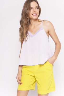 MÁS INFORMACION Realizado en Gasa creepe con textura similar a la bambula. Formato súper evase. Largo a la cadera. Escote V con detalle de puntilla a tono. Breteles finos en misma tela. Podes encontrarla en una amplia paleta de colores saturados. Cómoda y fresca, no podes dejar de tenerla esta temporada!
