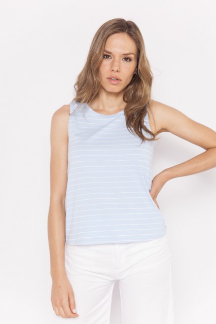 MÁS INFORMACION Realizado en Algodón con lycra rayado. Esta prenda es ideal para el verano, tiene un hermoso detalle en la espalda que la hace única. De formato clásico y largo a la cadera.
