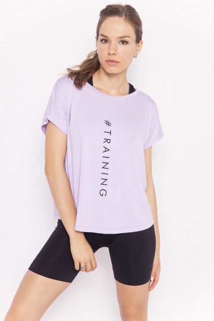 MÁS INFORMACION Realizado en Modal con Lycra liso y estampa central vertical. Formato clásico manga corta sin sisa. cuello redondo, con detalle en espalda de tajo central. Una prenda súper combinable para salir a entrenar con toda la onda!