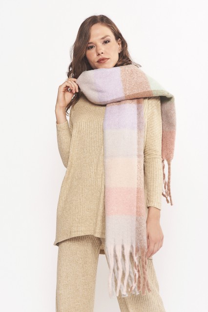 MÁS INFORMACION Realizado en Lana con acrilico con motivo de cuadros en una variada paleta de color, con opciones mas suaves y otras más saturadas, sólo tenés que elegir tu preferencia. Flecos en igual material. No te pierdas la practicidad que brindan las mantas como accesorio, es un "must have" que no te podes perder! Medida: 1,80 x 0,37m.