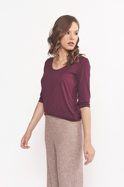 MÁS INFORMACION Realizado en Modal con Lycra gamuzado liso, tela de hermosa mano y confortable textura. Manga tres cuartos, escote U, largo a la cadera. Calce clásico, se adaptará a un sin fin de outfits, no te la pierdas!