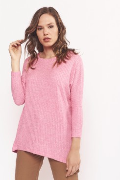 MÁS INFORMACION Realizado en Lanilla morley liso melange en una hermosa paleta de color. Escote redondo. manga larga, hombro caído. Caja de estilo cuadrada, calce over size suave. Largo a la cadera, ruedo irregular. También podés usarlo como total look con algunos colores del Palazzo Arthur.