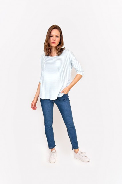 MÁS INFORMACION Realizado en Modal con Lycra rayado bitono en una excelente paleta de color. Manga tres cuartos, escote bote suave. Caja cuadrada, hombro caído. Calce over size suave. Largo a la cadera. No te podes perder esta prenda con toda la onda!