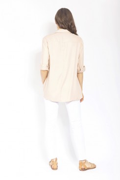 MÁS INFORMACION Realizado en Twill liso en un excelente paleta de color. Manga tres cuartos, cuello camisa y cartera tipo chomba con botón al tono de la prenda. Largo a la cadera. Calce over size. Una prenda súper versátil y fresca que no te puede faltar esta temporada!