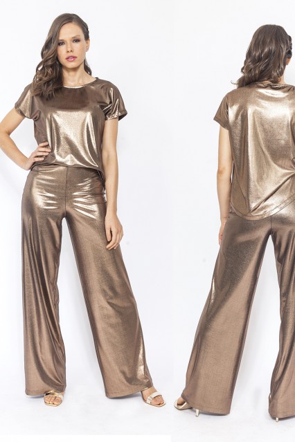 MÁS INFORMACION Realizado en Microfibra pesada con estampa de foil tela de hermosa mano y excelente caída, de altísima tendencia en esta temporada. Ideal para la temporada de eventos de fin de año. Tiro medio alto, cintura elastizada que se adaptará a diversas siluetas. Corte estilo palazzo, calce clásico. También podes usarla junto con la Remera Nasino como total look, captando todas las miradas. Es importante saber que las prendas metalizádas son súper versátiles, todo depende como las combines!