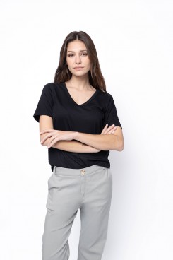 MÁS INFORMACION Realizado en Jersey liso en una hermosa paleta de color. Escote V, manga cortar un poquito mas larga que lo habitual. Escote V, largo a la cadera. Calce clásico. Un clásico que no puede faltar en tu guardarropas como comodín de un sin fin de looks!
