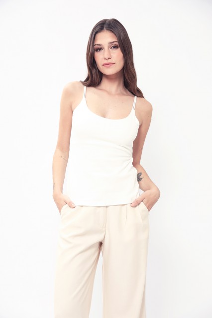 MÁS INFORMACION Realizado en Algodón con lycra liso. Escote U con doble bretel de cordón elástico al tono. Largo a la cadera. Calce slim, con elastano que se adaptará con comodidad a diversas siluetas. No te pierdas todas las opciones de color que te ofrece!