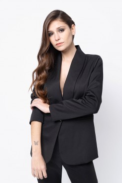 MÁS INFORMACION Realizado en Creppe liso, tela de hermoso calce y caída. Solapa estilo smokin con botón diferenciado metálico que le da el toque de estilo a la prenda. Manga larga, largo a la cadera. Calce clásico. Podes usarlo como total look o traje con el Pantalón Melilla que también lo podes encontrar en la línea noche. No te lo pierdas!