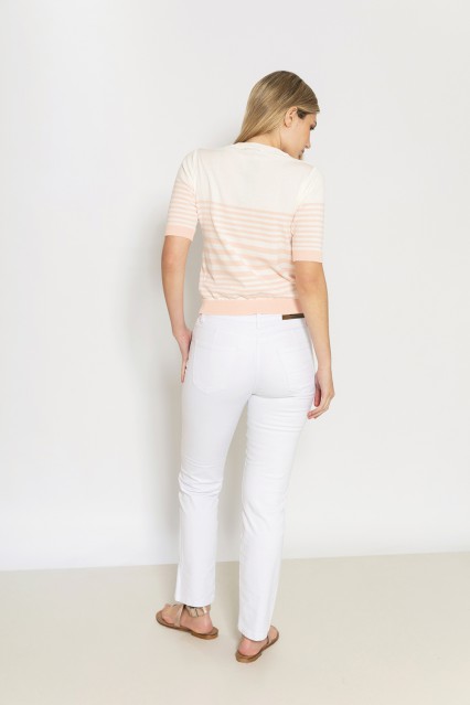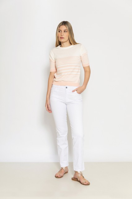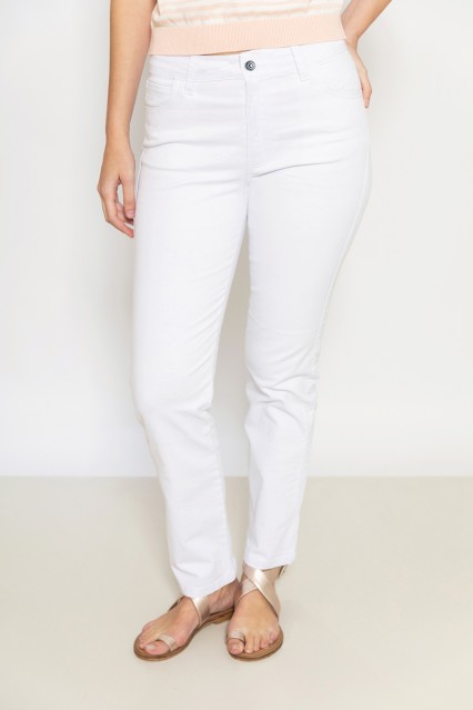 MÁS INFORMACION Realizado en Denim blanco confort, es decir que en su composición tiene elastano, lo que le aporta un calce excelente y gran comodidad en el uso. Cinco bolsillos, tiro medio alto. Corte recto, calce clásico. Botón metálico marcario. Un clásico que no te puede faltar en tu armario!