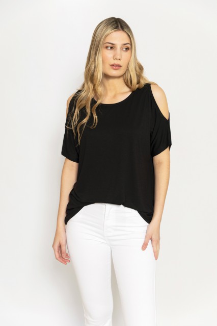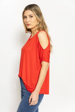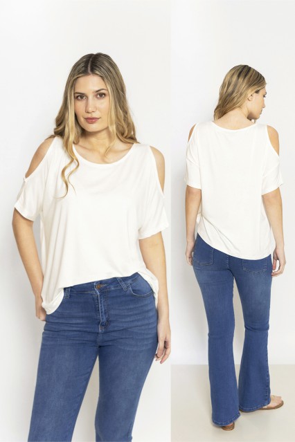 MÁS INFORMACION Realizado en Modal con Lycra liso en una hermosa paleta de color. Escote redondo, manga corta al codo con aberturas en hombros que le aportan un aire sexy y juvenil. Largo a la cadera. Prenda de hermosa caída, fluida y fresca. Calce clásico.