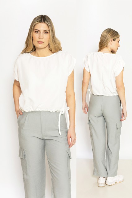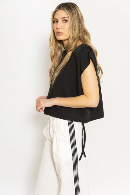 MÁS INFORMACION liso en una hermosa y combinable paleta de color. Formato cuadrado, largo a la cintura. Escote redondo, manga corta con frunces en hombros que le aporta personalidad a la prenda. Lagrima en escote de espalda con botón nacarado al tono. Ruedo con jareta y tira de igual tela que permite fruncirlo o usarlo recto haciendo aún mas versátil la prenda. Podes usarlo con el pantalón de igual tela, un total look súper canchero cómodo y distinto. No te la podes perder!