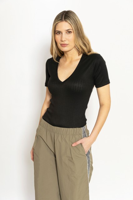 MÁS INFORMACION Realizado en Tela de punto con un delicado desagujado que hace a la prenda súper delicada y femenina. Escote V profundo que estilizará la silueta. Manga corta. Calce slim, esta pensada para que quede ceñida al cuerpo, largo a la cadera. Muy versátil y con una paleta de color adorable!
