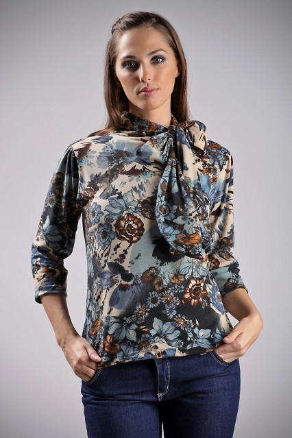 MÁS INFORMACION Realizado en Modal con Lycra de invierno estampado con motivos florales en una hermosa paleta de color. Manga tres cuartos, cuello alto con lazo en igual tela que le dan un aire femenino y glamoroso. Largo a la cadera.