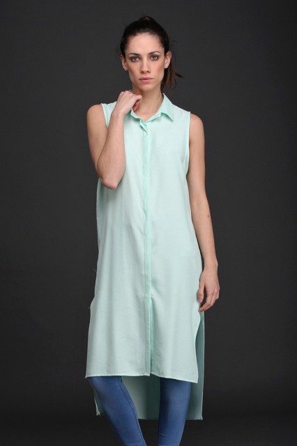 MÁS INFORMACION Realizado en Fibrana lisa. Prenda sin mangas super larga con botones de pasta al tono. Tajos laterales, largo debajo de la rodilla, ruedo irregular. Hermosa paleta de color.
