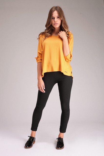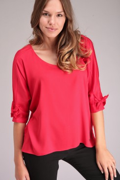 MÁS INFORMACION Realizado en Fibrana satinada con lycra, lo cual le aporta un sutil brillo a al prenda. Manga al codo con detalle de cintas para anudar, escote U, largo a la cadera. De suave mano y delicada caída.