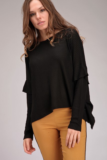 MÁS INFORMACION Realizado en Lanilla con textura. Escote redondo, de corte cuadrado con volados en los laterales, lo cual le da un look naif a la prenda. Disponible en una amplia paleta de colores.