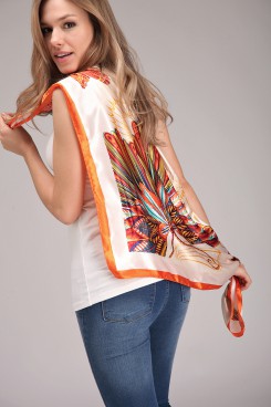 MÁS INFORMACION Realizado en Raso . Formato cuadrado, con guarda de color pleno en contraste con el fondo, y un hermoso estampado de mariposas que le darán el toque naif a tu look.