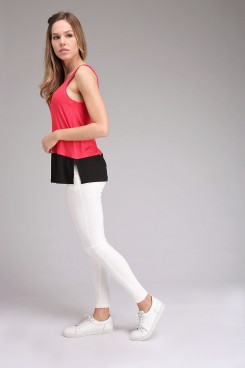 MÁS INFORMACION Realizado en Modal con Lycra . Escote U en delantero y espalda. Con tajito lateral. Ruedo recto, con zócalo negro que genera contraste con el tono de base de la prenda. Fresca y super cómoda ideal para un look cassual.
