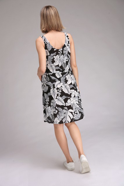 MÁS INFORMACION Realizado en Voile estampado. Sin mangas, escote V con cartera y botones de pasta negros, corte en cintura con sutil frunce, bolsillos laterales. Una prenda con un toque naif, super fresca y cómoda, ideal para este verano.