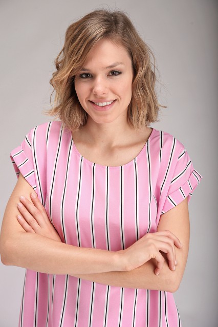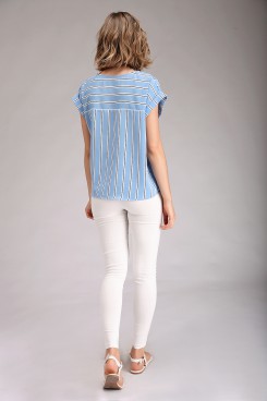 MÁS INFORMACION Realizado en Creppe satinado estampado a rayas verticales que estilizarán la silueta. De corte cuadrado con escote redondo, mangas cortas con zócalo. Ruedo recto en delantero y sutilmente curvado y más largo en espalda. Una prenda ideal para tus looks de oficina.