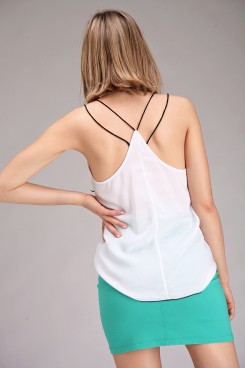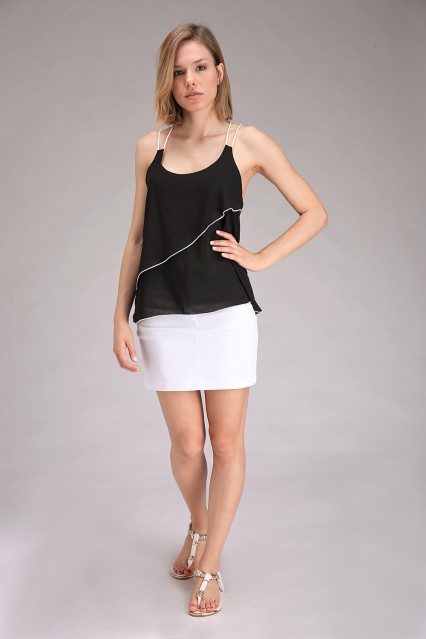 MÁS INFORMACION Realizado en Voile liso. Musculosa con doble bretel de tiritas contratono, escote U en delantero y estilo deportivo en espalda, de formato evase en dos capas, con ruedo rulotte en combinación con color doble bretel. Delicada, femenina y original, esta prenda no puede faltar en tu guardarropas.