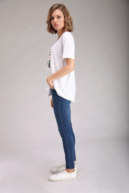 MÁS INFORMACION Realizado en Modal con Lycra , materialidad que le aporta comodidad y excelente calce. Manga corta, ruedo curvo, escote redondo aplicado, estampa en delantero con motivo navy. Un básico super canchero para lucir esta temporada.