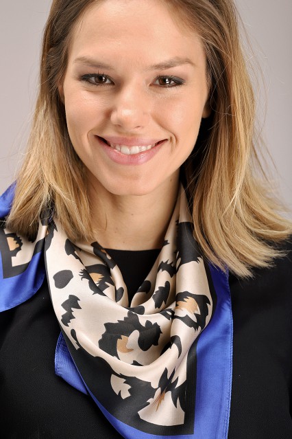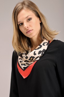 MÁS INFORMACION Realizado en Seda . De formato cuadrado, con estampa central animal print y marco de color pleno. Accesorio con sutil brillo y suave mano.