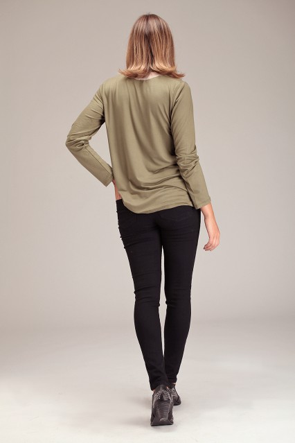 MÁS INFORMACION Realizado en Modal con lycra. De corte evasé, manga larga, escote V con cuello ancho a contra tono. Prenda confortable de excelente caída, disponible en una amplia paleta de colores.