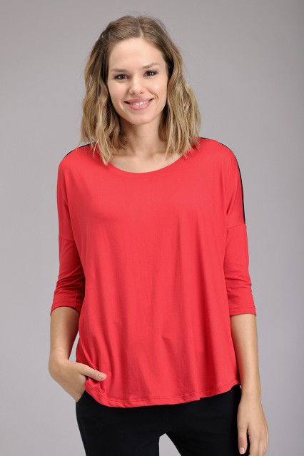 MÁS INFORMACION Realizado en Modal con Lycra gamuzado. De corte cuadrado, escote redondo, manga 3/4. Vivo contra tono en hombros, largo a la cadera. Prenda con excelente caída que se adapta a diversas siluetas.
