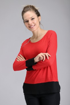 MÁS INFORMACION Realizado en Lanilla combinación bitono. Manga ranglan, ruedo recto. Detalle de cierre metálico diagonal en unión manga con cuerpo de la prenda. Escote U, recorte de ruedo y puños combinados en lanilla negra.