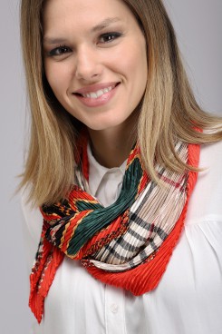 MÁS INFORMACION Realizado en Seda plisada, recurso súper femenino y de última moda. Estampa con diseño de alta tendencia, cadenas y escoces. Brillante paleta de color que le aportará brillo y textura a tu look.