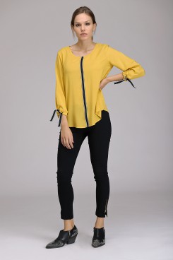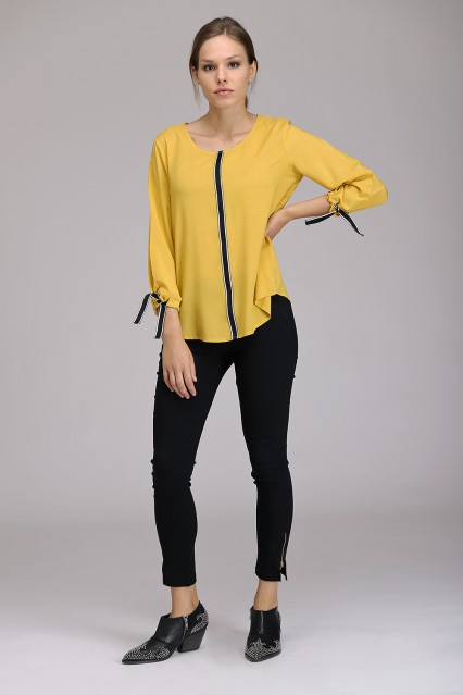 MÁS INFORMACION Realizado en Voile liso. Escote redondo. Formato evase suave. Mangas 3/4 baloon, con cinta pasante en puño. Detalle decorativo de cinta en centro delantero. Largo debajo de la cadera. Ruedo curvo, más largo en espalda. Disponible en una hermosa paleta de colores.