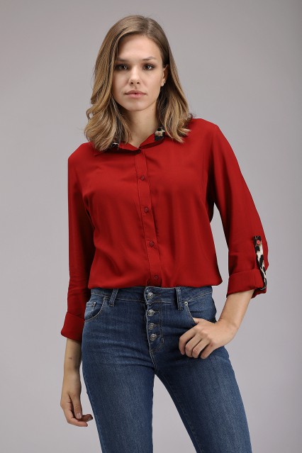 MÁS INFORMACION Realizado en Voile Manga larga con traba animal print que permite graduar el largo. Botones de pasta al tono. Prenda de corte clásico que realza la figura. Vista de cuello interna estampada animal print última tendencia para esta temporada.