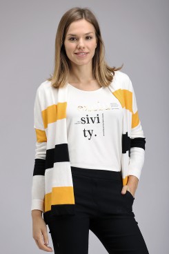 MÁS INFORMACION Realizado en Viscosa con Lycra . Formato cuadrado con solapa volcada. Manga larga. Rayado en bloque con repetición de tres colores. Bolsillos laterales con acceso diagonal. Una prenda super canchera, de suave mano y excelente caída