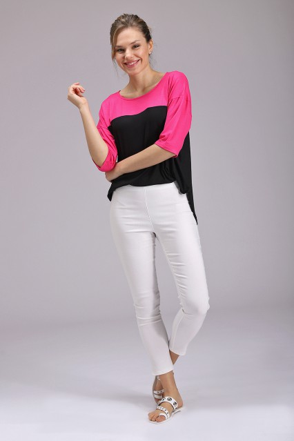 MÁS INFORMACION Realizado en Modal con Lycra . Formato cuadrada. Mangas 3/4 . Escote redondo. Ruedo curvo más largo en espalda. En dúo de colores. La parte superior en todas las variantes presenta colores con más luz, lo cual centra la atención en lo mismos y estiliza la figura.