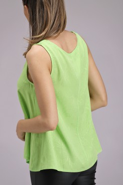 MÁS INFORMACION Realizado en Voile satinado jaquard que genera un sutil brillo en la prenda. Formato evasé. Escote V con vista interna. Sin mangas y textura super suave.