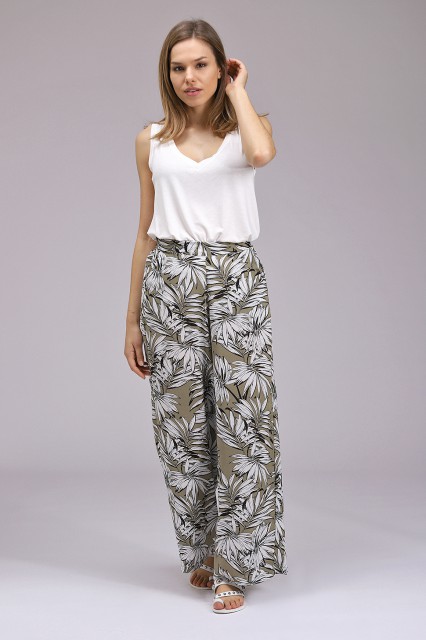 MÁS INFORMACION Realizado en Voile estampado. Tiro alto. Formato palazzo. Bolsillos laterales. Cintura con elástico embutido en espalda y lisa en delantero. Su estampado floral le aporta el look veraniego a esta prenda de textura fresca y liviana.