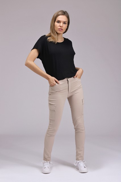 MÁS INFORMACION Realizado en Gabardina elastizada . Tiro medio. Estilo cargo ajustado. Bolsillos laterales con tapa. Una prenda que se convertirá en un básico esta temporada.