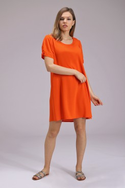MÁS INFORMACION Realizado en Voile pesado liso, tela con hermosa caída y gran mano. Escote redondo, manga corta con detalle de torzada en ruedo que le da el toque personal a la prenda. Largo sobre la rodilla, formato evasé suave. Una prenda que no puede faltar en tu guardarropas con una hermosa paleta de color.