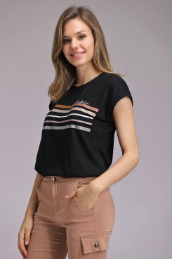 MÁS INFORMACION Realizado en Jersey . Prenda de formato cuadrada. Mangas cortas con dobladillo externo. Cuello redondo aplicado. Ruedo recto. Estampa lineal a colores + frase tipográfica.