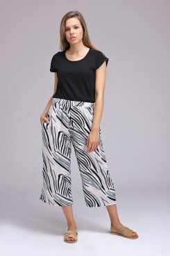 MÁS INFORMACION Realizado en Voile estampado animal cebra en colores no tradicionales. Estilo palazzo capri. Cintura con elástico embutido. Bolsillos laterales. Una prenda super fresca y con toda la onda para lucir esta temporada.