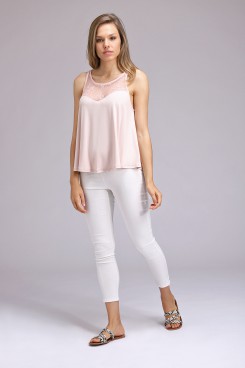 MÁS INFORMACION Realizado en Creppe de punto. Combinada con canesú de encaje. Ruedo curvo. Abertura en espalda. Prenda de formato evasé que aporta movimiento y mejor calce a diversas siluetas.