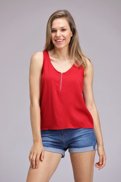 MÁS INFORMACION Realizado en Twill . Estilo musculosa de bretel ancho. Escote U con detalle de cierre metálico en delantero. Ligeramente evasé. Terminación de escote y sisa con collareta interna. Disponible en una sobria paleta de colores.