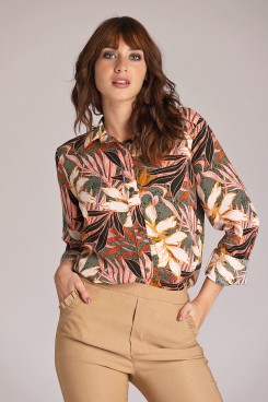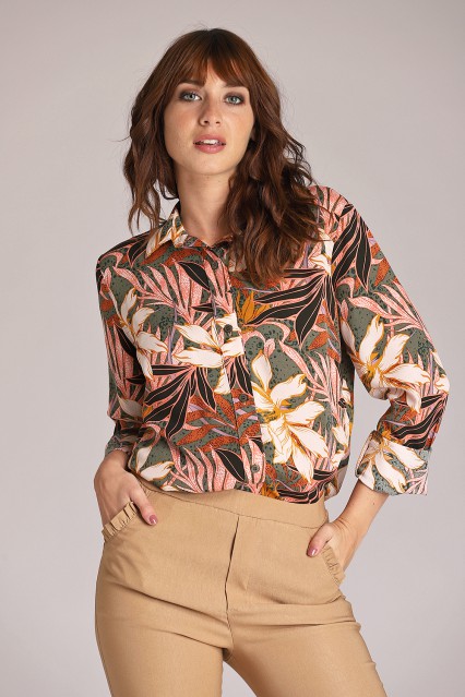 MÁS INFORMACION Realizado en Voile estampado floral que aporta diseño y colorido a la prenda. Camisa de corte clásico con ruedo curvo y botones de pasta al tono.