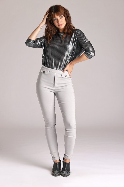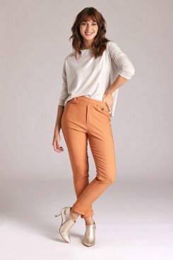MÁS INFORMACION Realizado en Bengalina . De tiro alto. Cintura con elástico embutido. Falsa bragueta. Detalle de tapitas a los laterales a modo decorativo con botones metálicos. Ruedo con botamanga y estilo chupín. Prenda con la comodidad de una calza y el estilo de un pantalón.