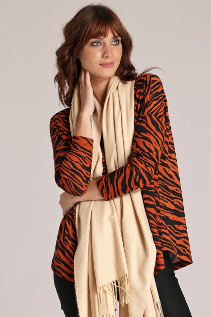 MÁS INFORMACION Realizado en Lana con acrilico . De formato rectangular. Con flecos en laterales. Lisa, ideal para un look net.