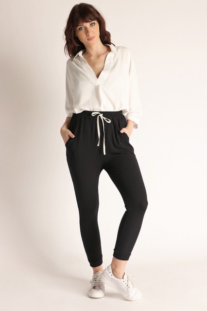 MÁS INFORMACION Realizado en Morley . Tiro medio. Cintura con elástico embutido y cinta de ajuste valenciana a contra tono. Terminación con puño. Una prenda super confortable.